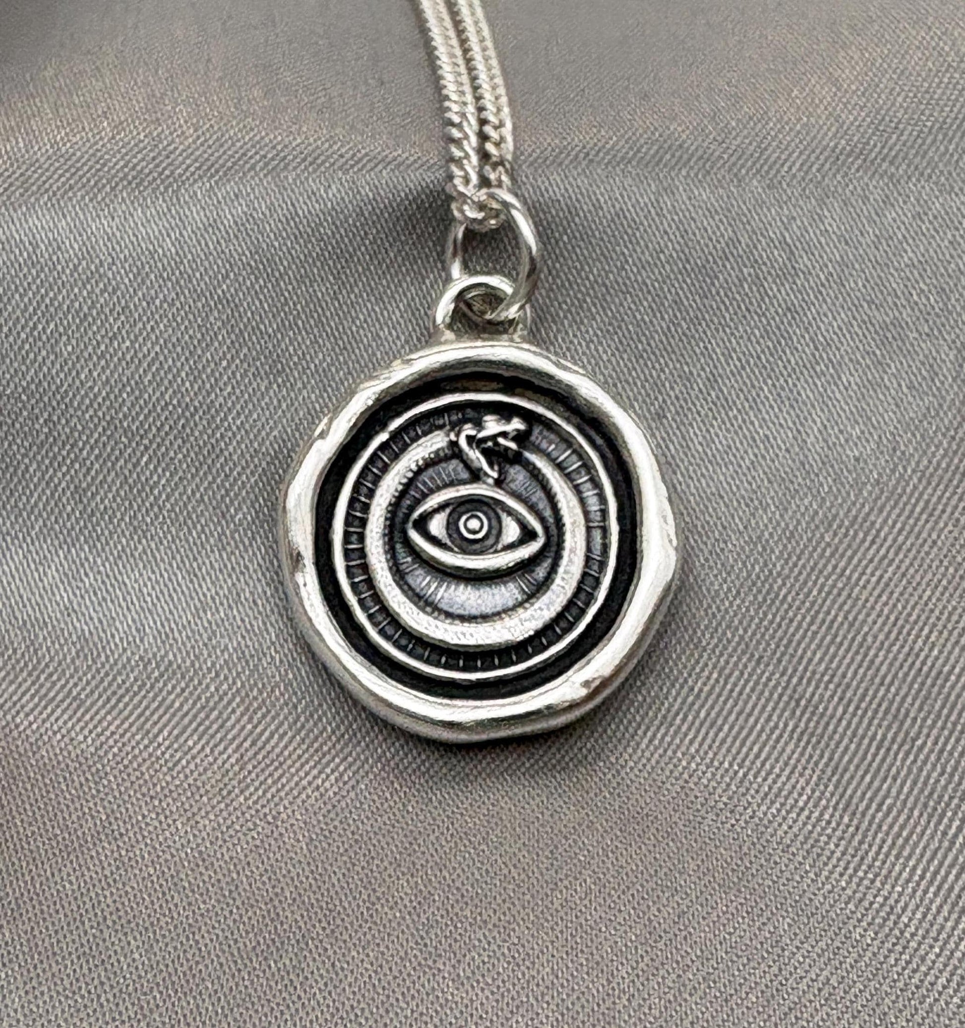 All-Seeing Eye and Serpent Wax Seal Necklace – Handmade Silver Protective Amulet Pendant, Intaglio Heirloom Design by LT Studio