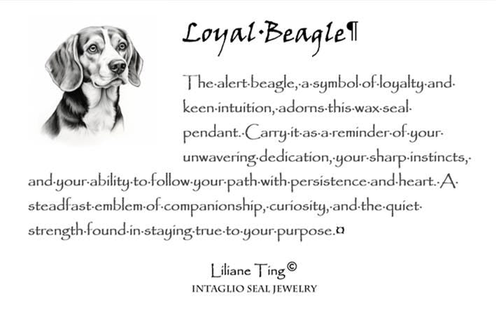 The alert beagle, a symbol of loyalty and keen intuition, adorns this wax seal pendant. Carry it as a reminder of your unwavering dedication, your sharp instincts, and your ability to follow your path with persistence and heart. A steadfast emblem of companionship, curiosity, and the quiet strength found in staying true to your purpose.
