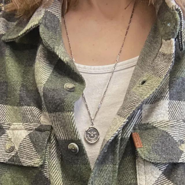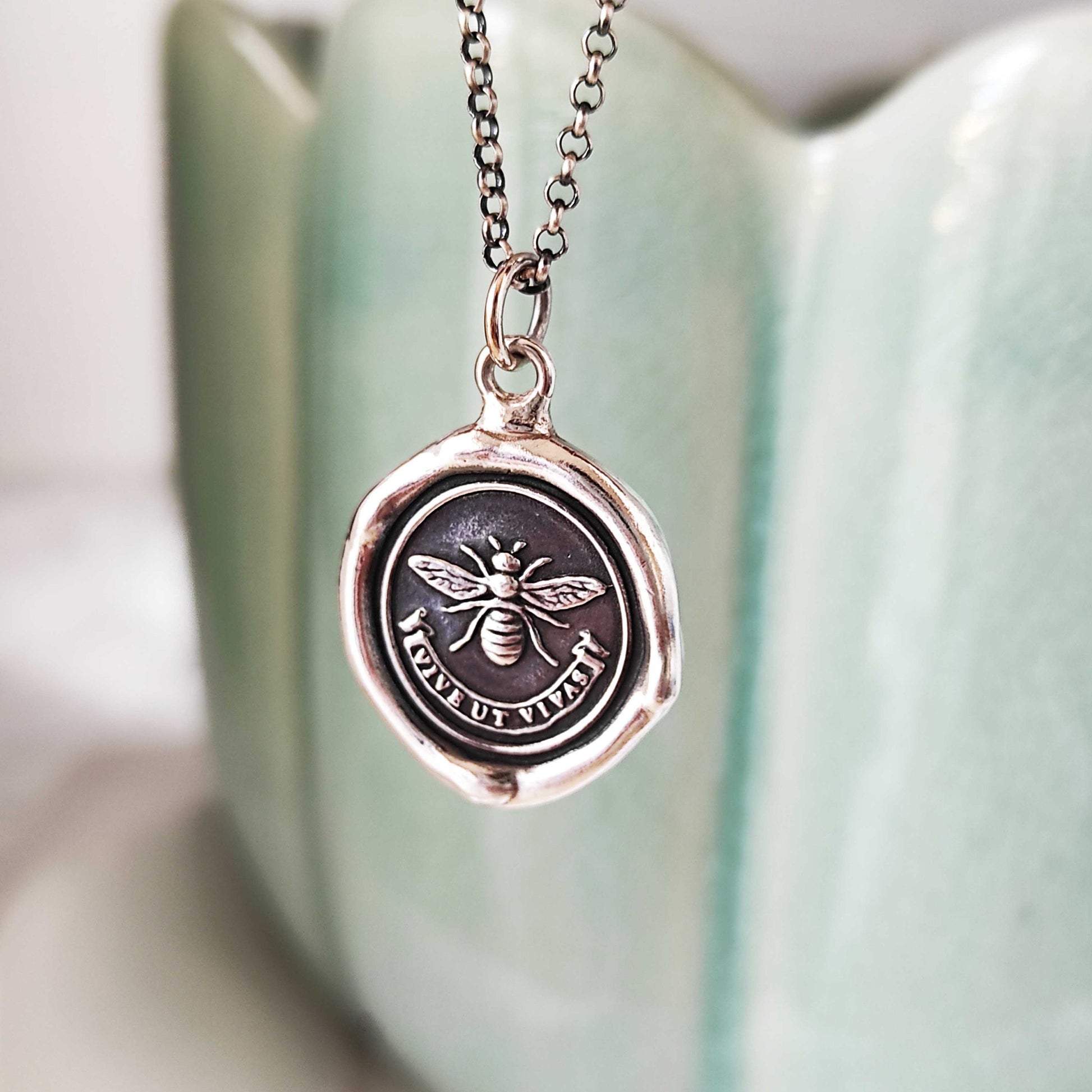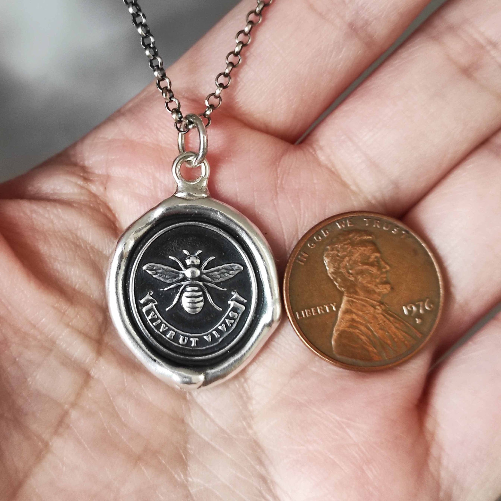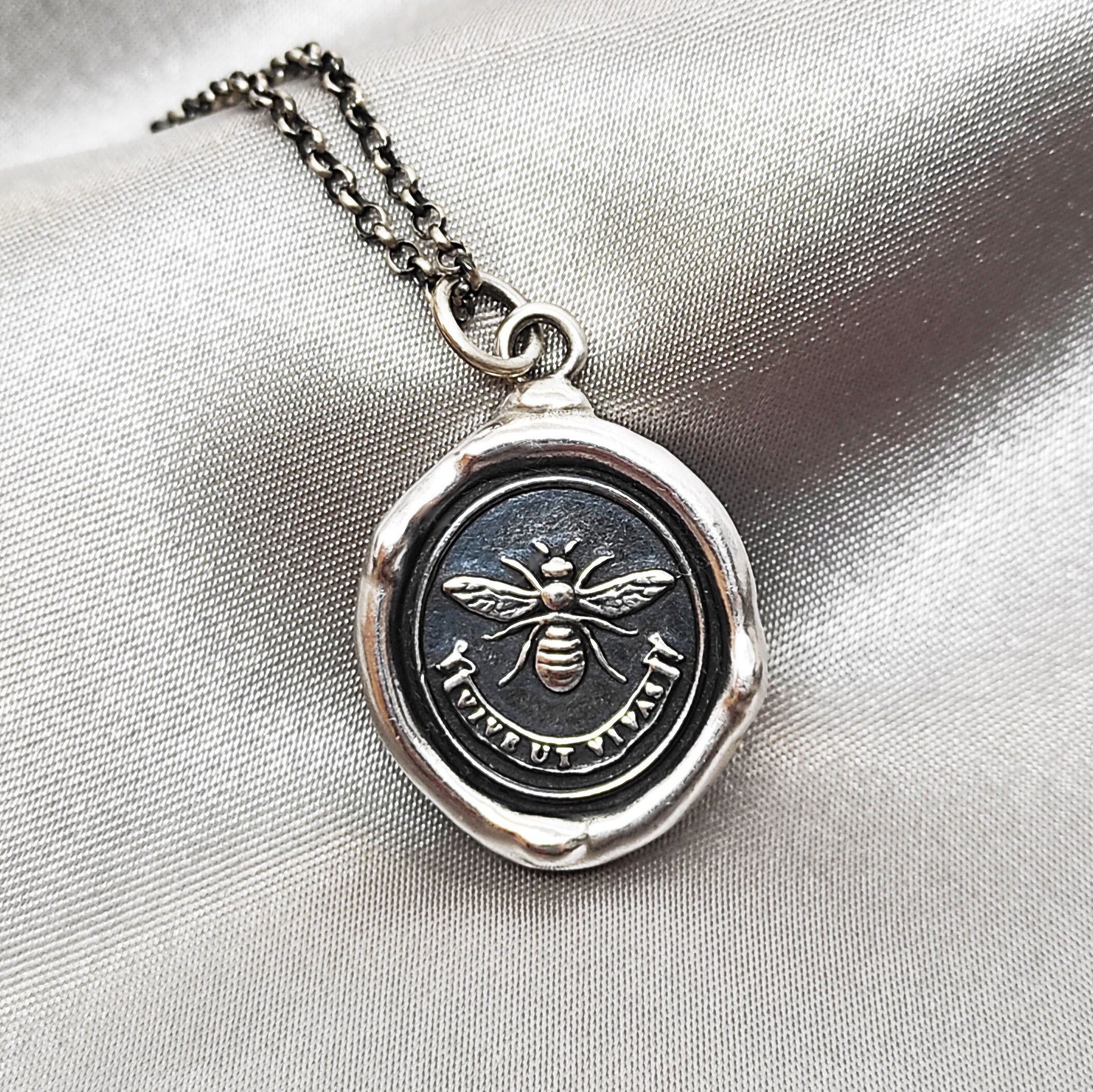 BEE Wax Seal Necklace Pendant, Handmade Silver Talisman, Intaglio Seal Heirloom, Original Design Liliane Ting Studio LT069