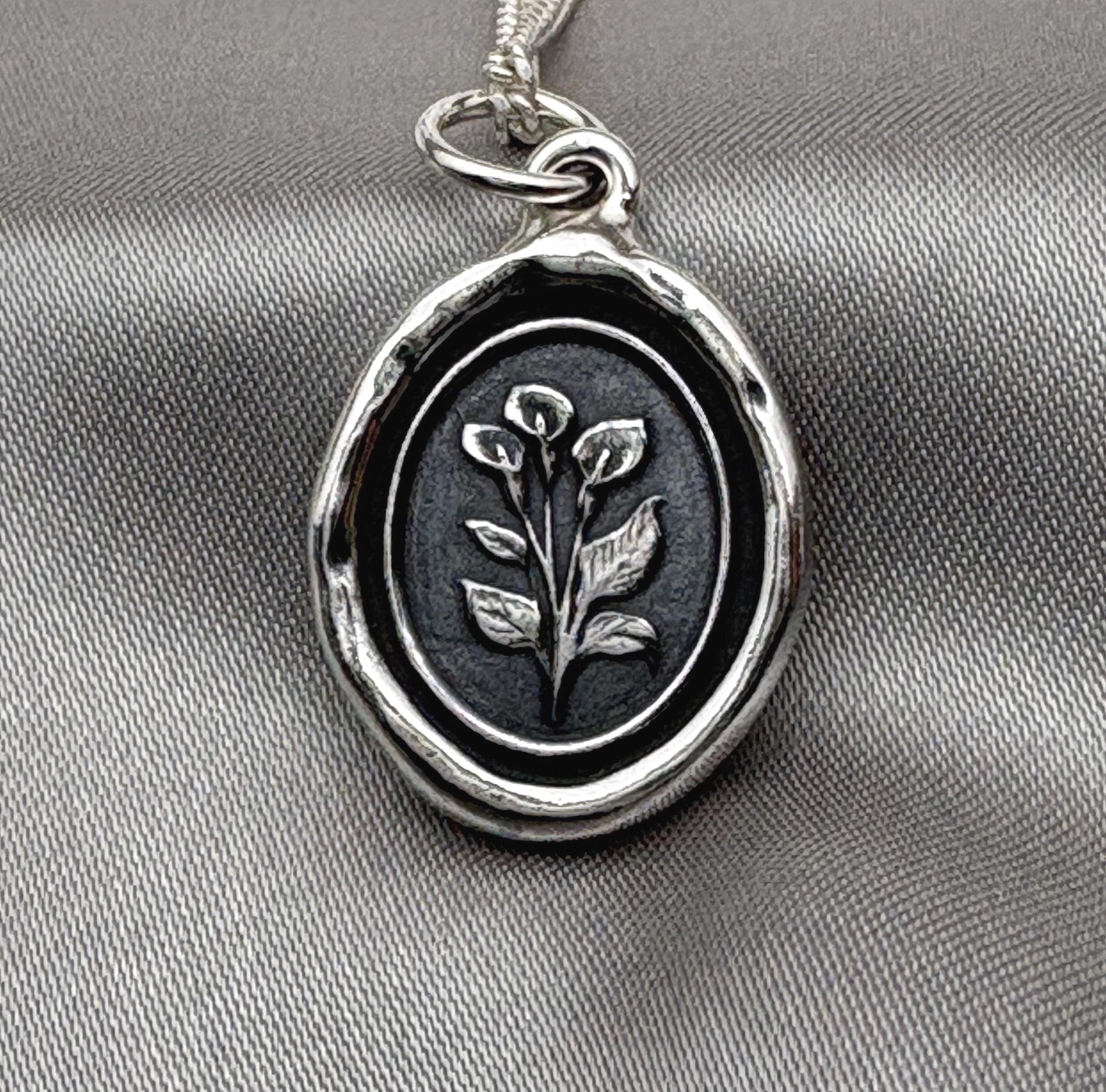 Calla Lily Pendant – Handmade Silver Wax Seal Flower Necklace, Intaglio Seal Heirloom, Symbol of Purity and Grace, Original Design LT