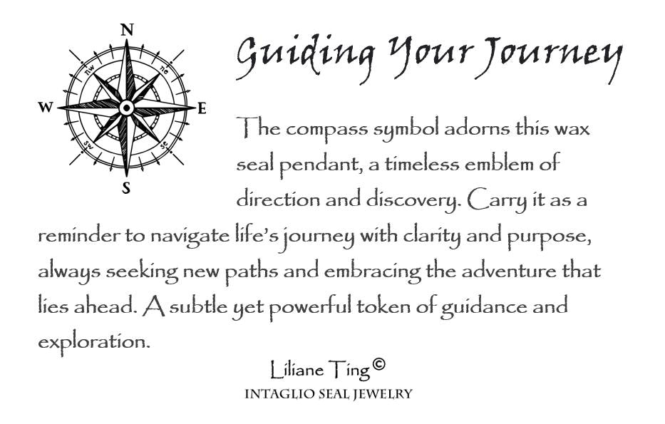 The compass symbol adorns this wax seal pendant, a timeless emblem of direction and discovery. Carry it as a reminder to navigate life’s journey with clarity and purpose, always seeking new paths and embracing the adventure that lies ahead. A subtle yet powerful token of guidance and exploration.