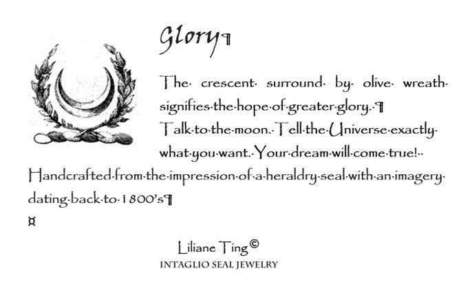The crescent surrounded by olive wreath represents the moon that lights the night sky for travelers. It is also a symbol of the hope of greater glory. Talk to the moon. Tell the Universe exactly what you want. Your dream will come true!