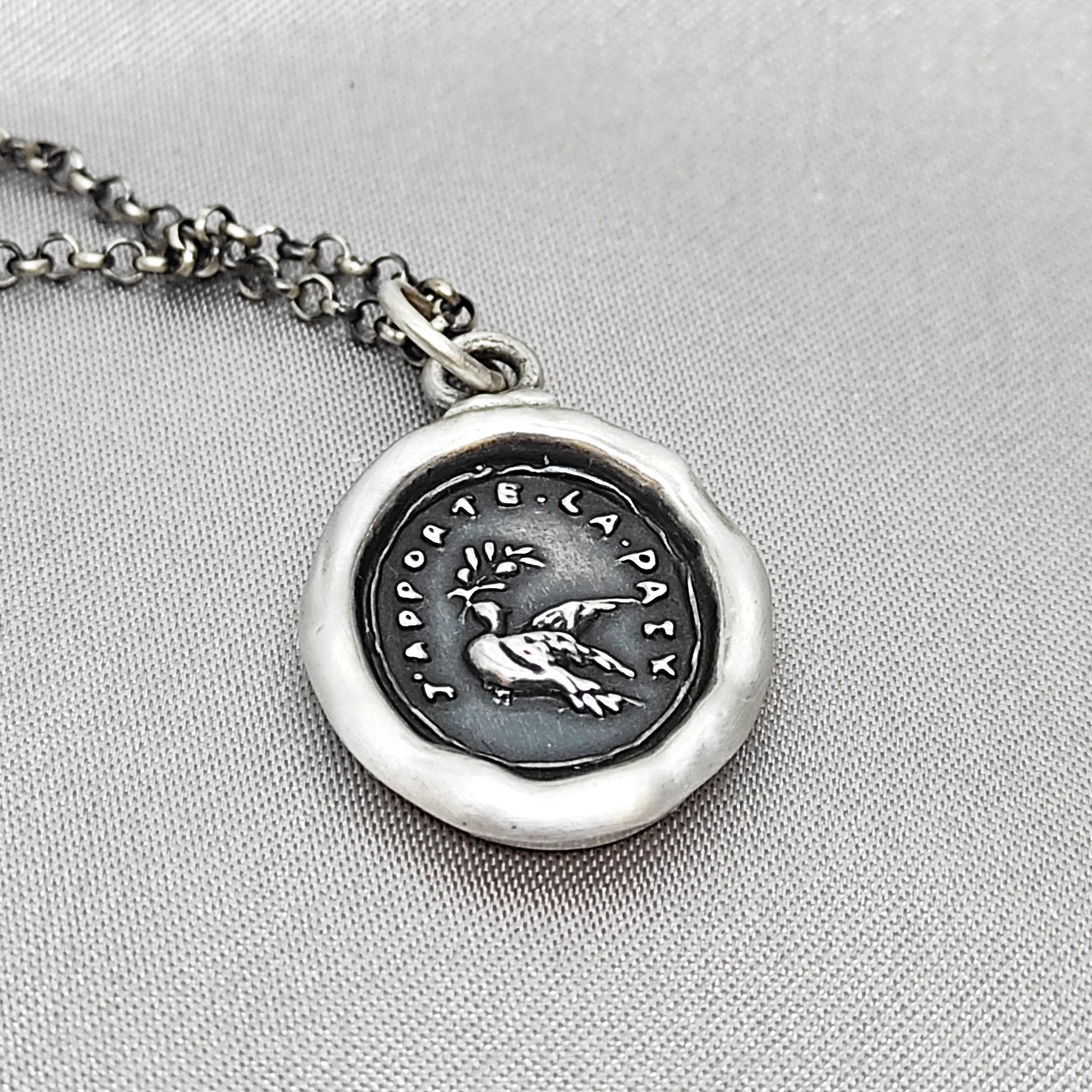 Dove Olive Branch Peace Love Wax Seal Necklace Pendant, Handmade Silver Talisman, Intaglio Seal Heirloom Original Design LT011