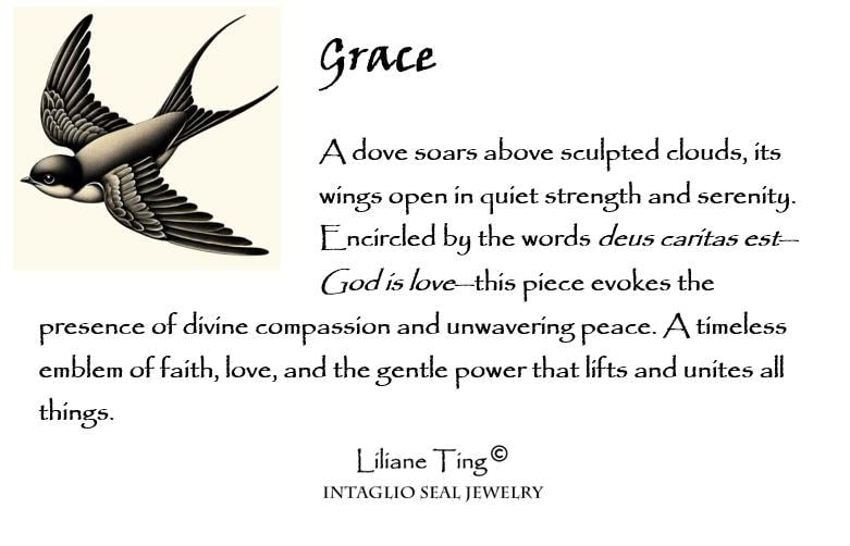 A dove soars above sculpted clouds, its wings open in quiet strength and serenity. Encircled by the words deus caritas est—God is love—this piece evokes the presence of divine compassion and unwavering peace. A timeless emblem of faith, love, and the gentle power that lifts and unites all things.