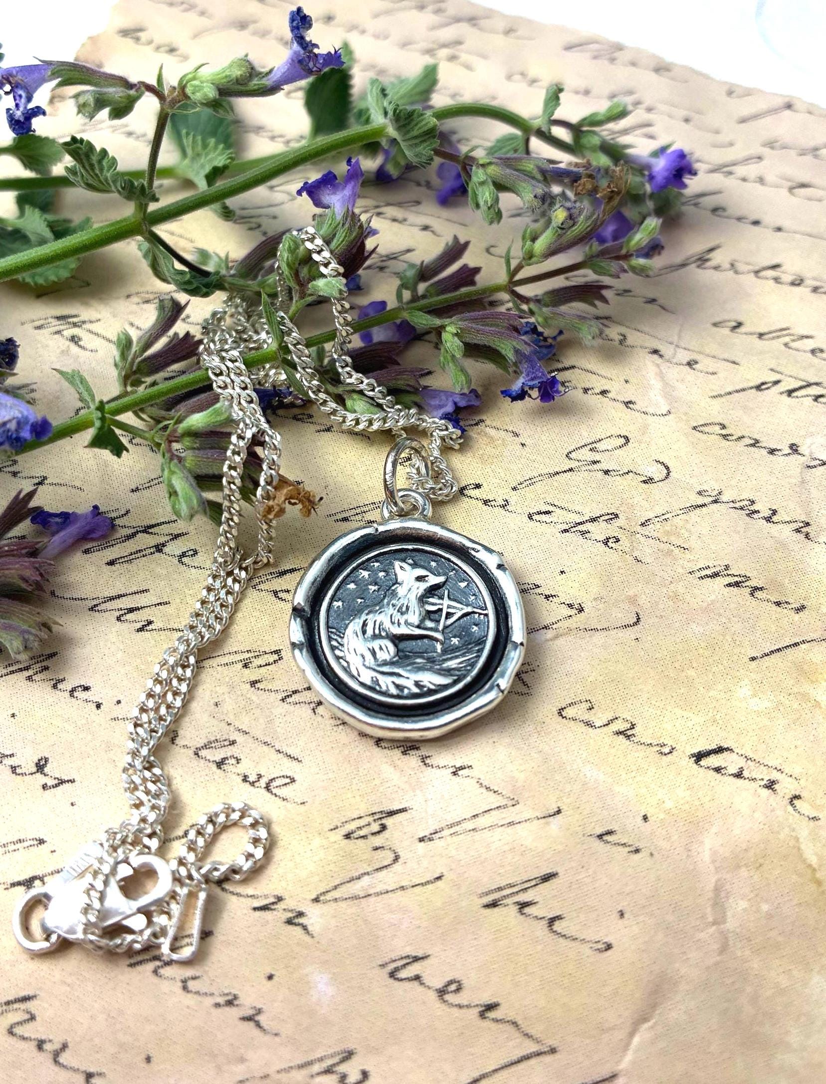 Fox Playing Violin Wax Seal Necklace, Handcrafted Silver Pendant, Music-themed jewelry, Inspirational Charm, Celestial Necklace LT0148