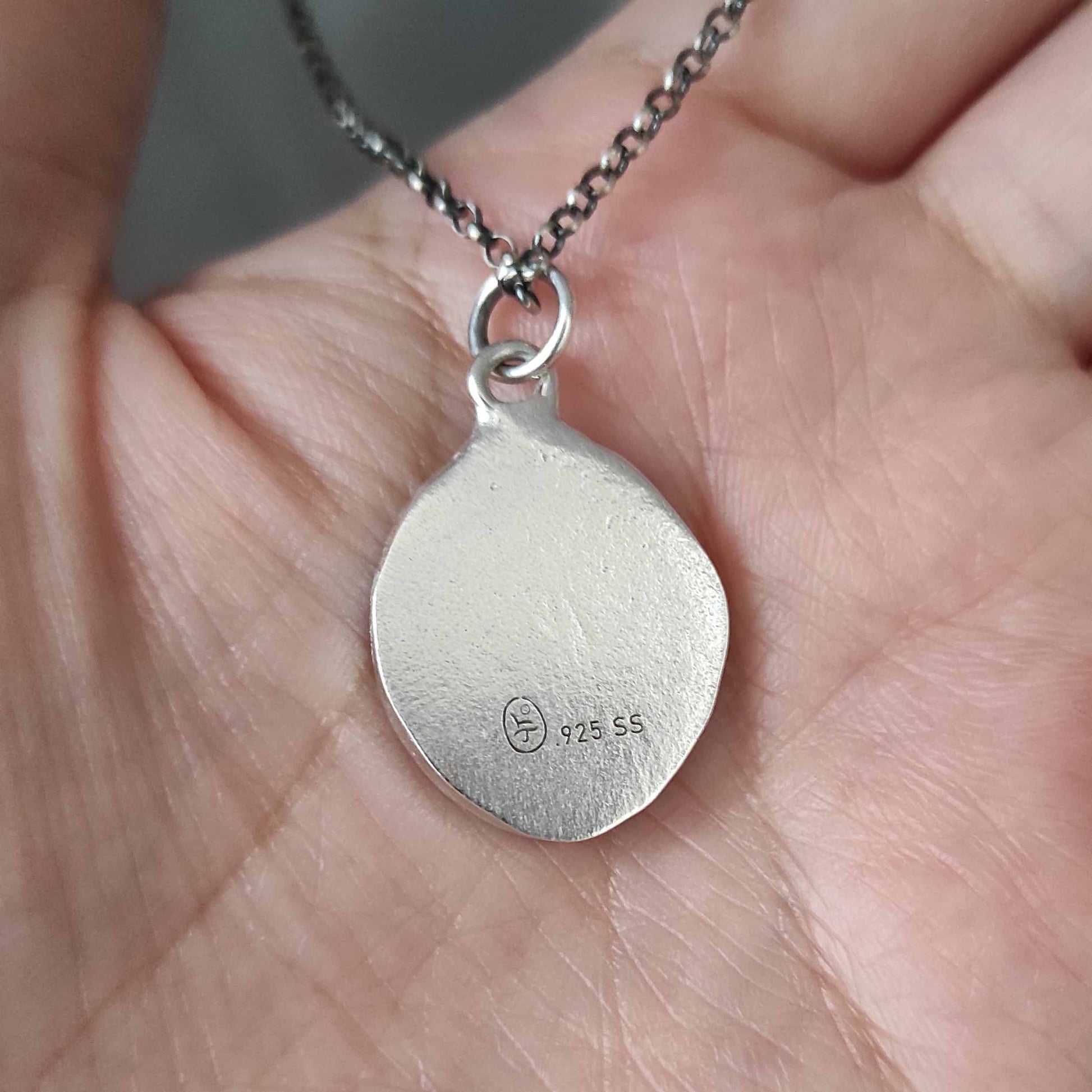 >>Chain Options: The sterling silver chain comes with a sterling lobster clasp. The chain joints are soldered to keep from breaking. Antique and Shiny finish are both available. You may choose from a variety of sterling silver chains from the drop down menus to the right, and the finish (antique or shiny) of the chain. Without notice, I will mail a shiny finish chain by default.