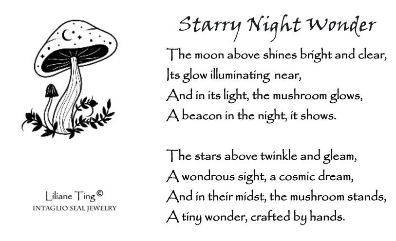Mushroom and Star Wax Seal Necklace – Handmade Silver Celestial Intaglio Pendant, Heirloom Design by Liliane Ting, LT006