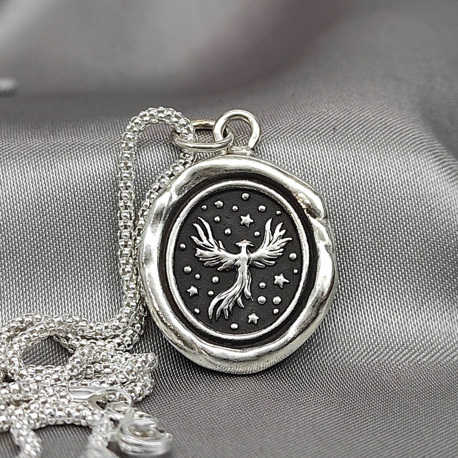 Phoenix Necklace, Fire Celestial Star Wax Seal Pendant, Handmade Silver Talisman, Intaglio Seal Heirloom, Original Design LT Studio LT021