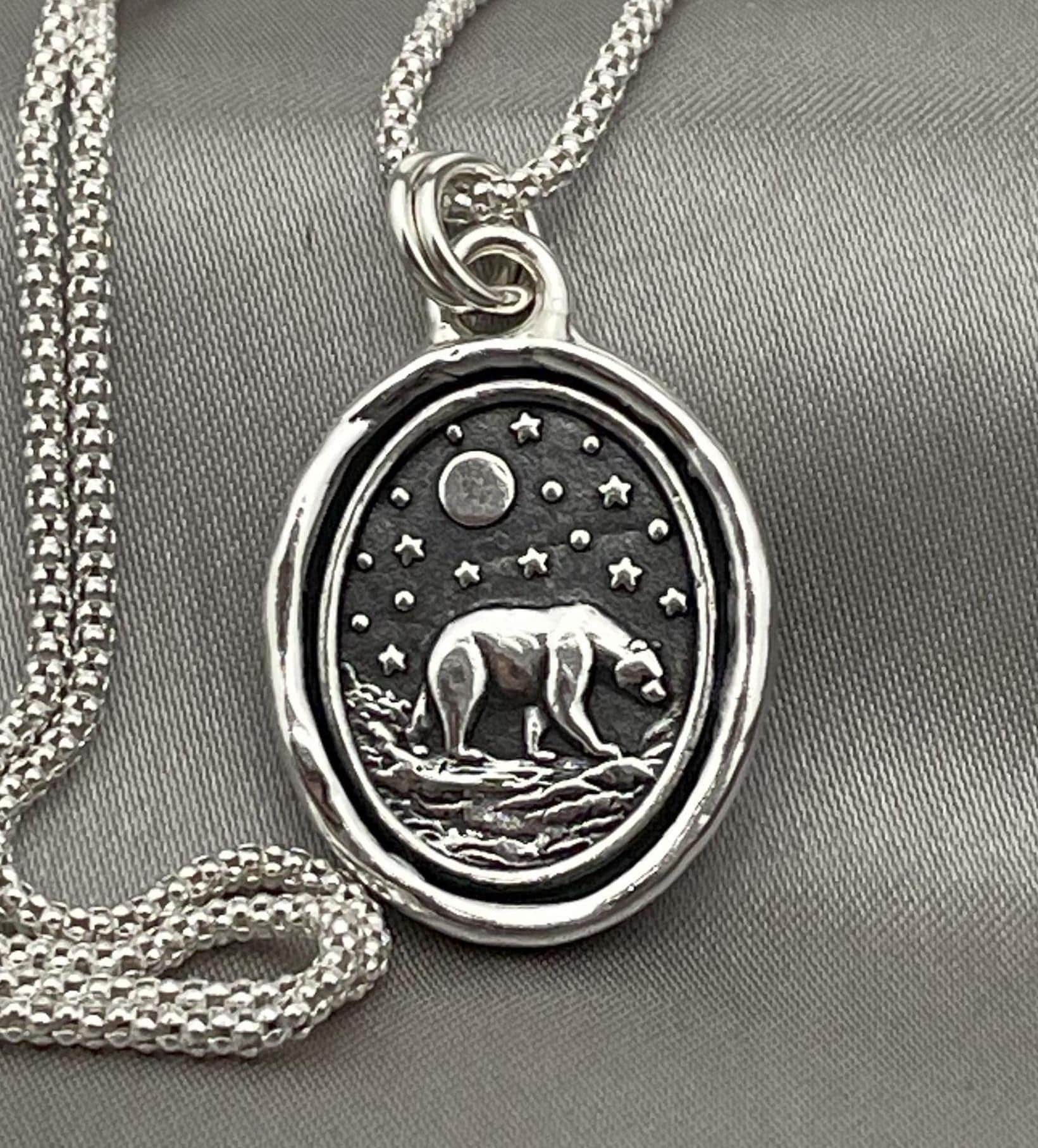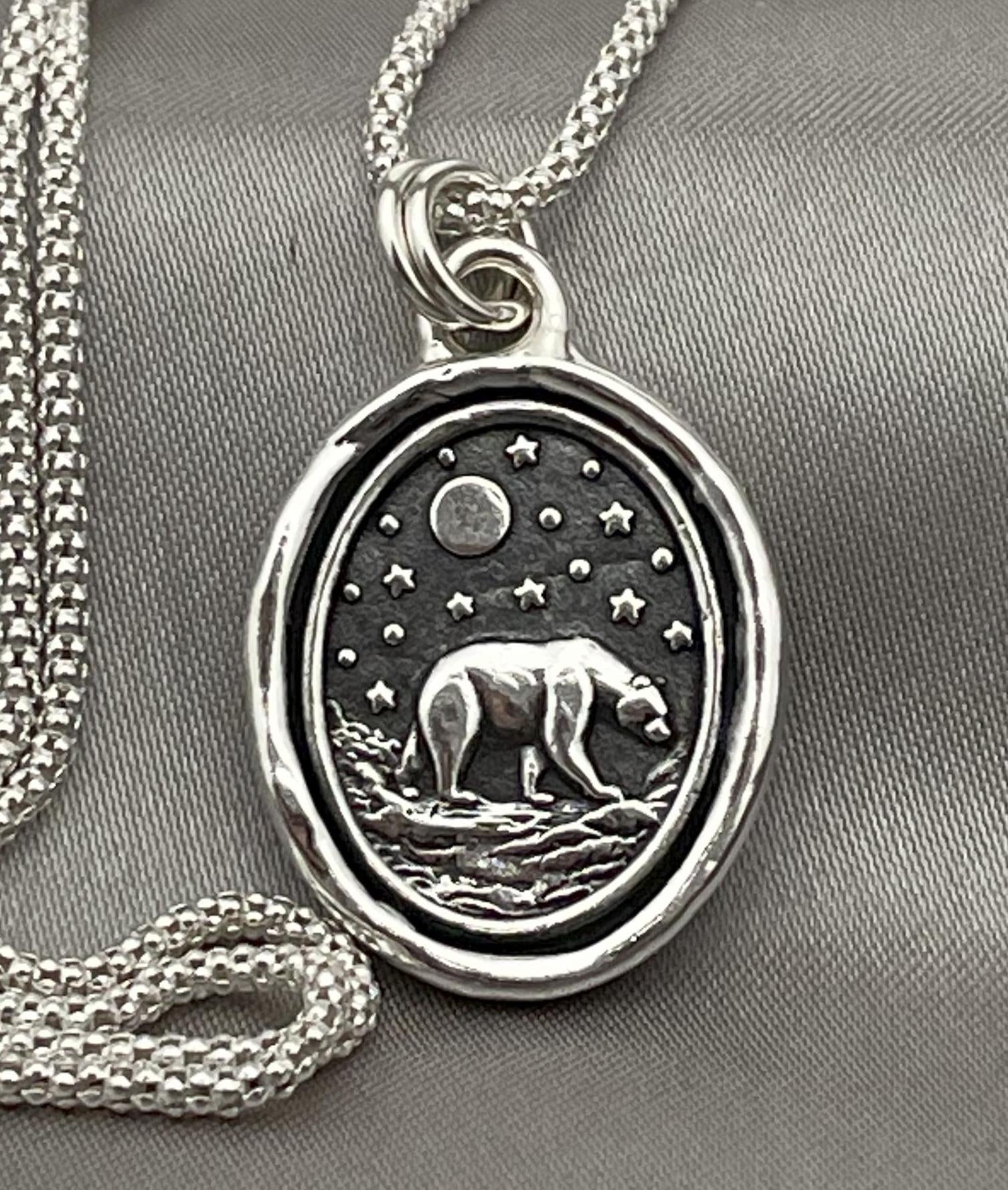 Polar Bear Necklace, Wax Seal Celestial Star Night Pendant, Handmade Silver Talisman, Intaglio Seal Heirloom, Original Design LT088