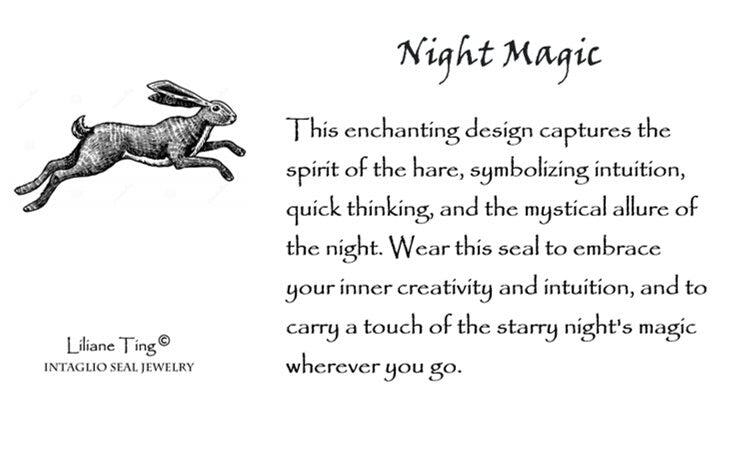 This enchanting design captures the spirit of the hare, symbolizing intuition, quick thinking, and the mystical allure of the night. Wear this seal to embrace your inner creativity and intuition, and to carry a touch of the starry night's magic wherever you go.