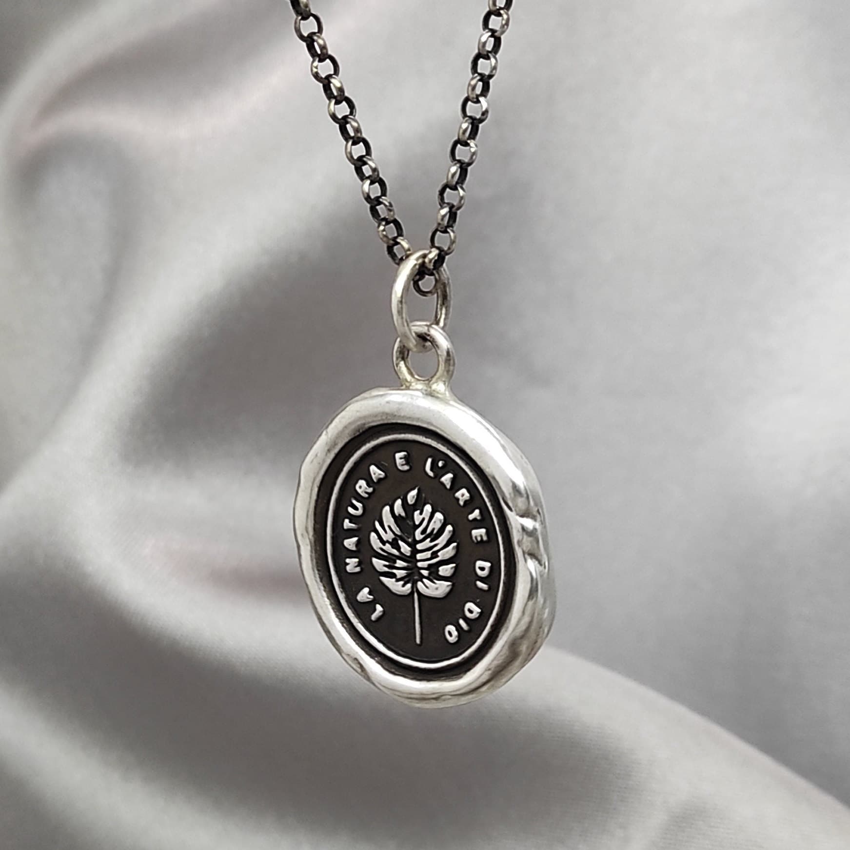 Silver Leaves Wax Seal Necklace – Handmade Silver Nature Intaglio Pendant, Heirloom Design by Liliane Ting, LT054