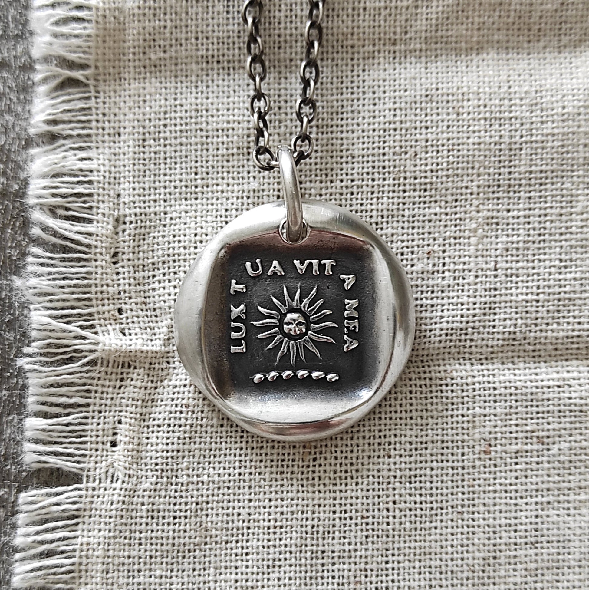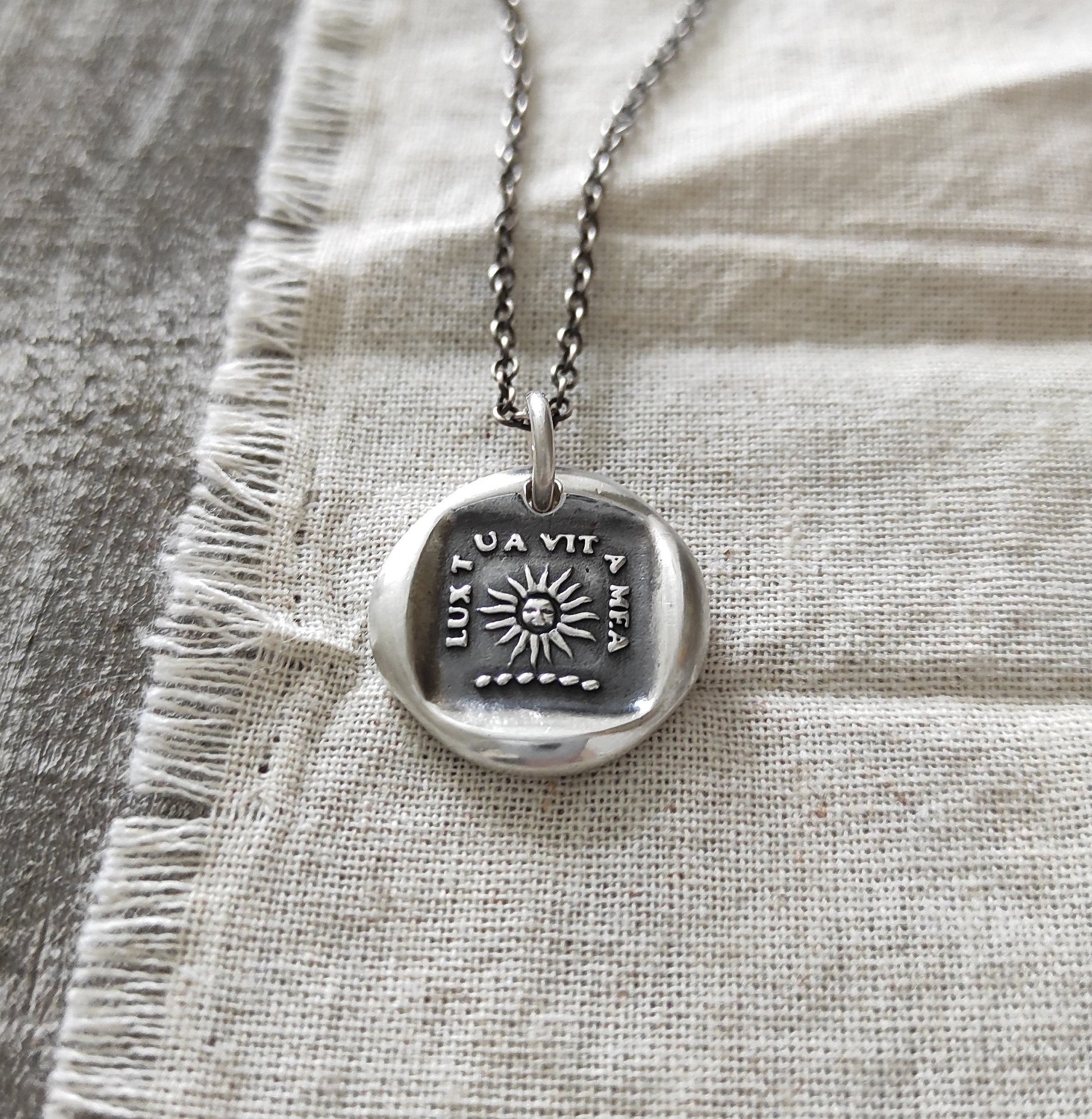 Sun Wax Seal Necklace – Handmade Silver Intaglio Pendant, Celestial Heirloom Charm by Liliane Ting, LT058