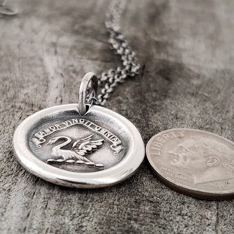 Swan Wax Seal Necklace ā Handmade Silver Intaglio Pendant, Graceful Heirloom Design by Liliane Ting, LT040