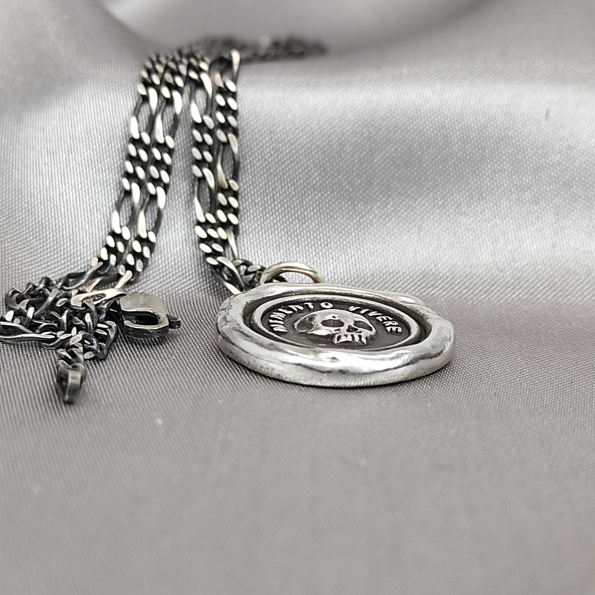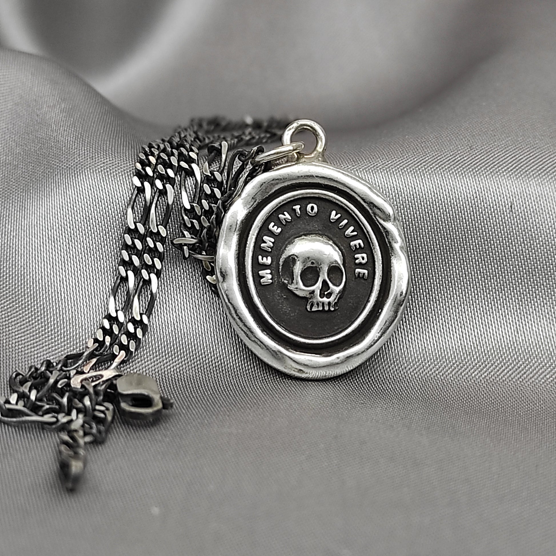 Skull Memento Mori Wax Seal Necklace – Handmade Silver Intaglio Pendant, Symbolic Heirloom Jewelry by Liliane Ting Studio, LT029