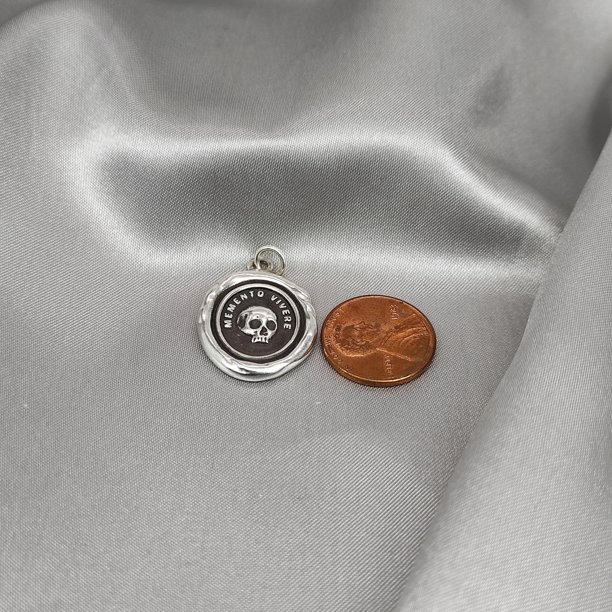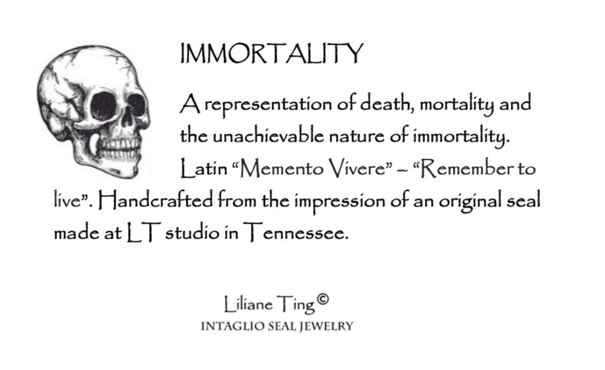 Skull Memento Wax Seal Necklace Pendant, Handmade Silver Talisman, Intaglio Seal Heirloom, Original Design Liliane Ting Studio LT029