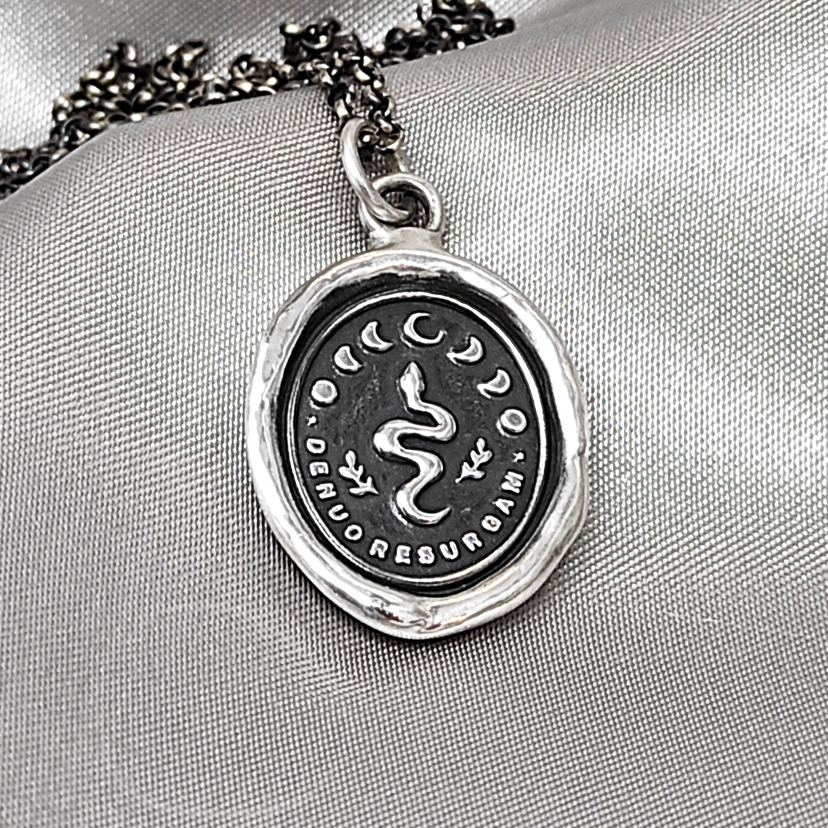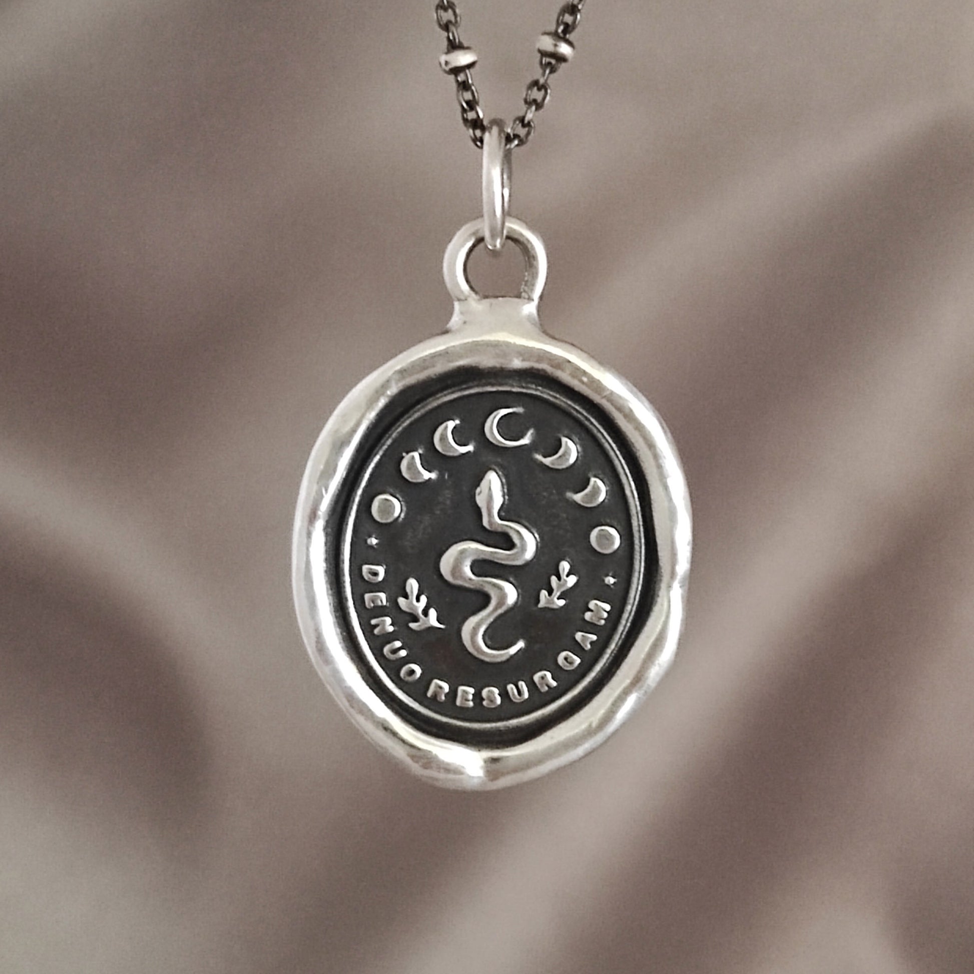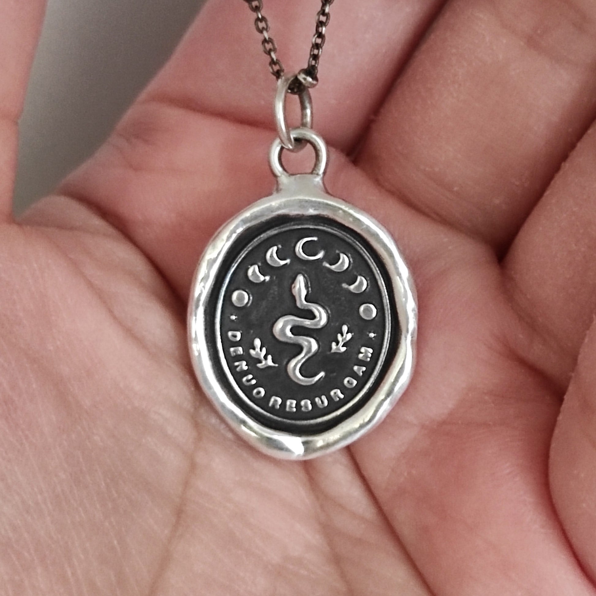 Snake Celestial Necklace - I Shall Rise Again - Wax Seal Pendant, Handmade Silver Talisman, Heirloom, Original Design Liliane Ting LT044