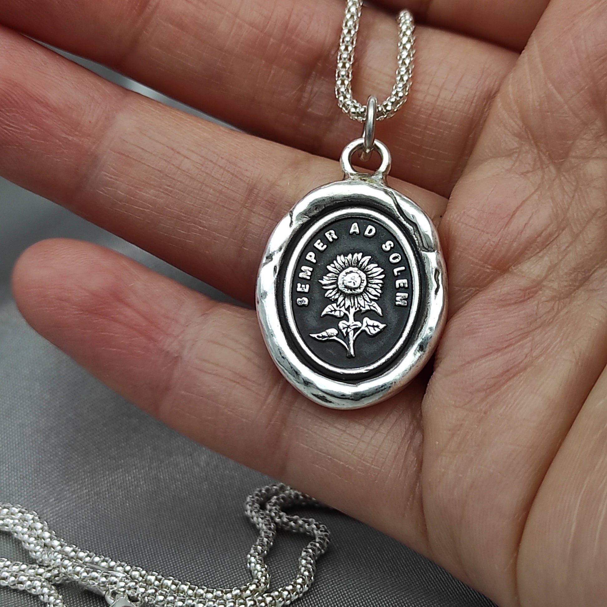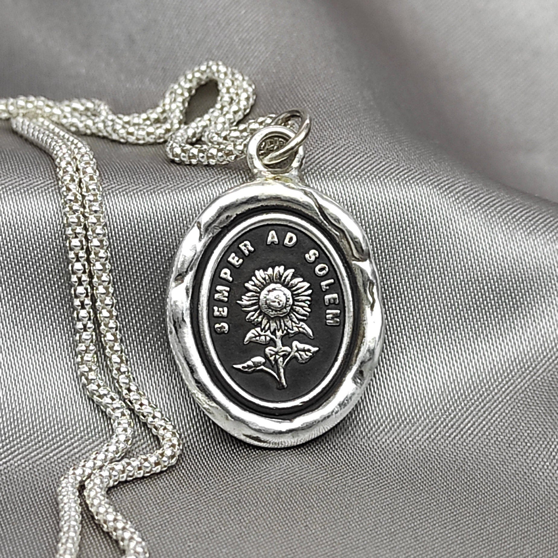 Sunflower Wax Seal Necklace Pendant, Handmade Silver Talisman, Intaglio Seal Heirloom, Original Design by Liliane Ting LT065