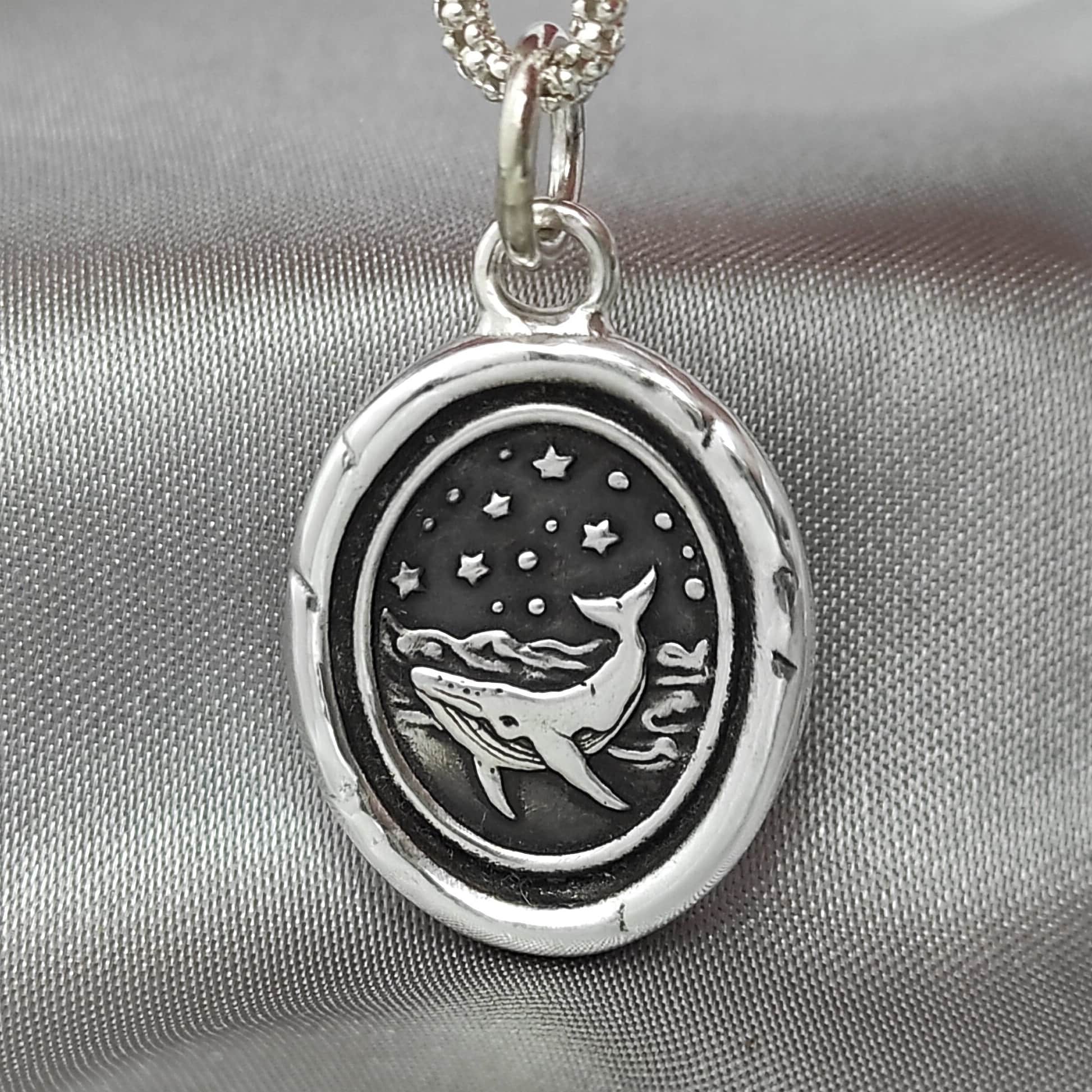 Whale Necklace, Wax Seal Ocean Celestial Pendant, Handmade Silver Charm, Intaglio Seal Heirloom, Original Design Liliane Ting 072