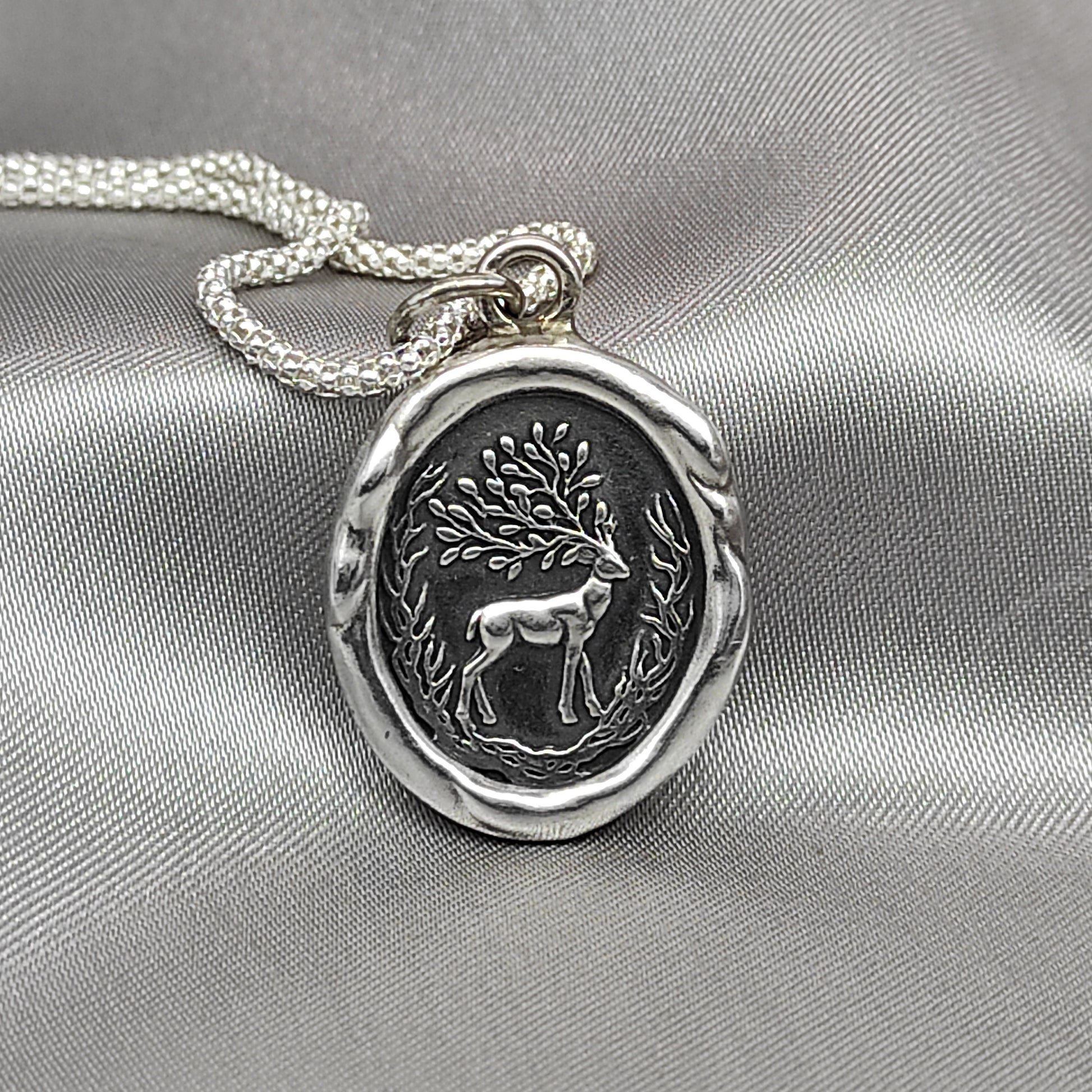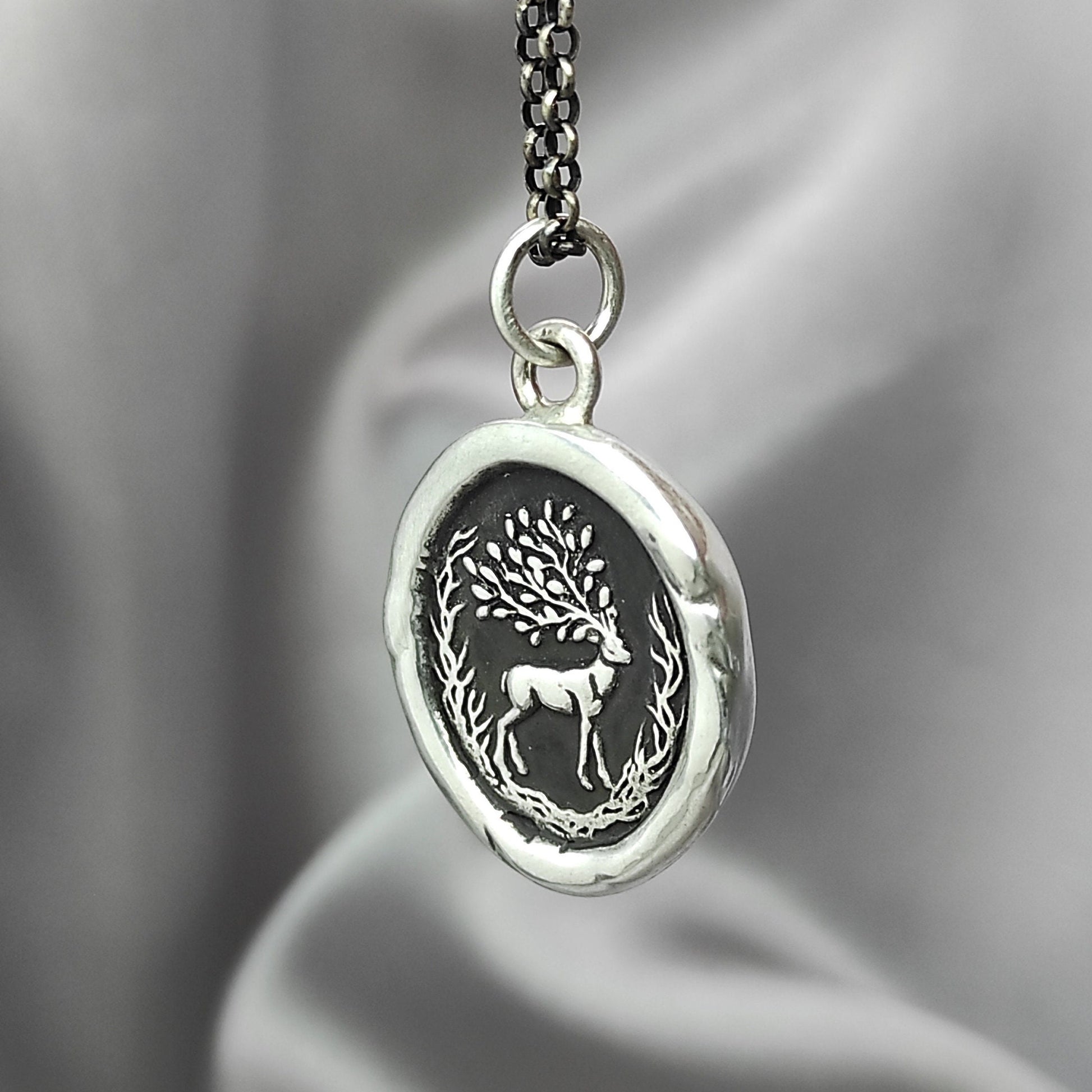 Woodland Deer Necklace, Wax Seal Pendant, Handmade Silver Talisman, Intaglio Seal Heirloom, Original Design Liliane Ting LT043